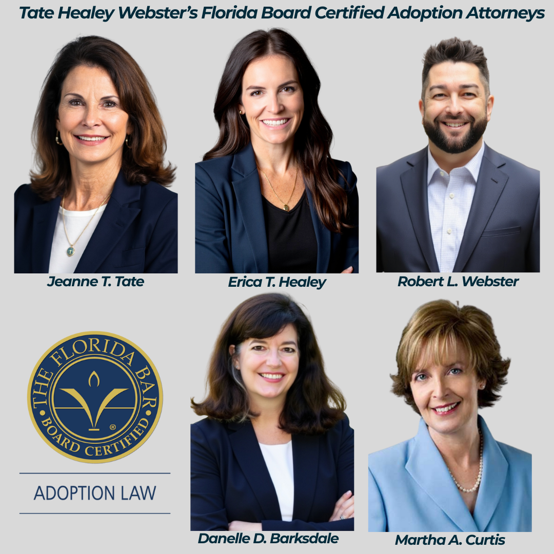 When choosing an adoption attorney, you should check to make sure the attorney is board-certified, as this signifies a proven level of specialized knowledge, experience, and professionalism in the field. When it comes to something as significant as building your family, you deserve the very best legal guidance. At Tate Healey Webster, our practice is entirely devoted to adoption and assisted reproductive technology (ART) law. This singular focus has made us the largest law firm in Florida exclusively dedicated to these areas.