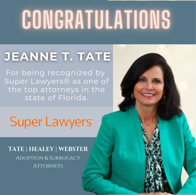 We are thrilled to announce that our esteemed colleague Jeanne T. Tate has once again been recognized as one of the Top 10 Attorneys in Florida by Super Lawyers. This prestigious honor is a testament to Jeanne’s exceptional legal expertise, dedication to her clients, and unwavering commitment to the field of adoption law. Selected…